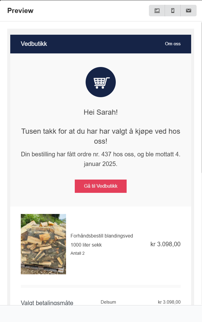 Bestilling gjøres enklest via Vedbutikken Om nettsiden ikke fungerer eller du har spørsmål, ta kontakt.